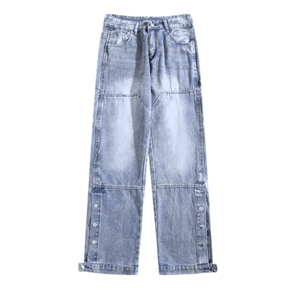 - High-Street Side Button Straight-Leg Jeans – Trendy Wide-Leg Casual Pants